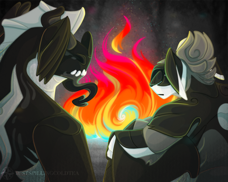 "You lost your chance to hear me! To comfort me like an older sister should have! You knew I was with pa the whole time, I was there to see it all happen, yet what did you do instead? When you found me in front of his door, crying and shaking?" He turned himself to her, wings flared out behind him as the flame cast shadows across his face. She in turn lowered herself, staring up at him in fear. When had her brother grown so much bigger than her? "You told me it was my fault he was in pain. You said to me, as I cried and cowered to the ground that it was my fault he was in pain, that I had done that to him. You chased me away from my only home, Ember."