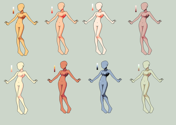 it’s been AGES since i made a base and i made 2! i’ll post the other shortly. this was the best i could do with skintones, i accidentally drew each colour on the same layer and so i manipulated filters to create different skin tones.
