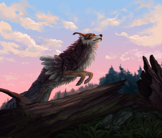 #animal #animals #character #commission #creature #digital #digitalart #digitalpainting #drawing #fantasy #painting #photoshop #plants #river #scene #sun #water #wing #wings #wolf #wolves #art