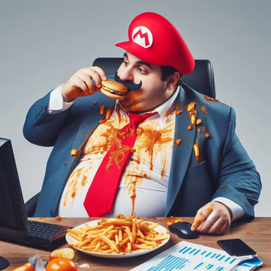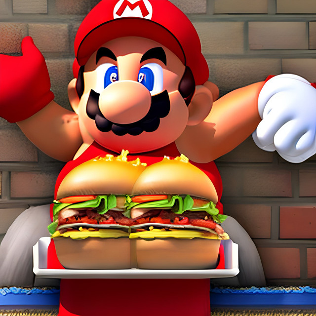 #digitalart #mario #photoshop #red #aiart #eating #fanartdigital #mariobrothers #marioluigi #moustache #nintendofanart #obese #photoshoppainting #pizza #videogamecharacter #videogamefanart #videogames #fatbelly #marionintendo #mario_nintendo #artificialintelligenceart
