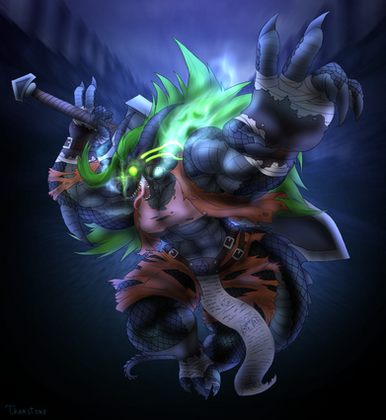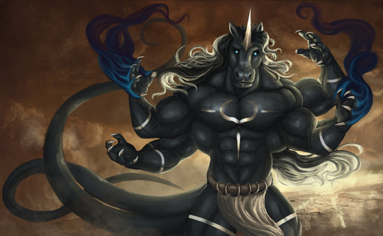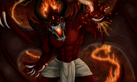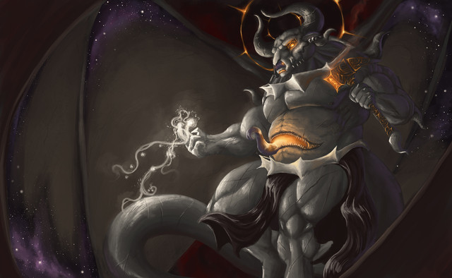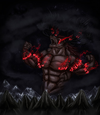 #bear #demon #fantasy #horns #magic #muscular #tail #anthro #chains #clouds #digitalpainting #mountains #painting #underworld