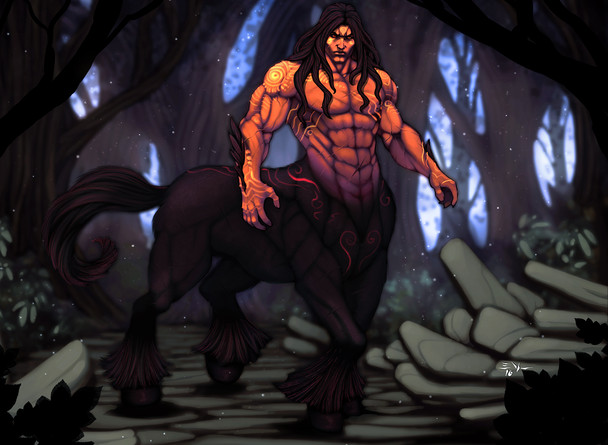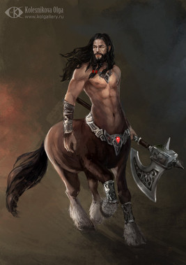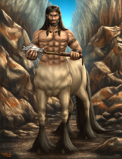 #armor #axe #bull #centaur #fanart #gathering #human #leather #magic #male #mountains #mtg #muscles #muscular #raven #taur #theros #trees #wolf