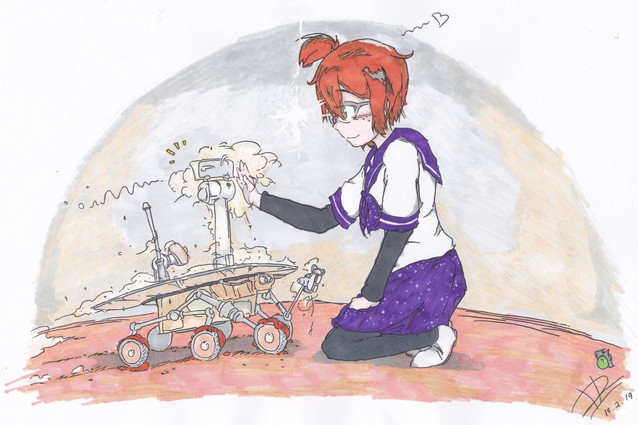 This is a rather late tribute ekdnrknrkdkeelI'm in a cowboy bebop discord server and someone suggested someone draw Ed with the Mars Rover (and also the voyager 1 in the bg)