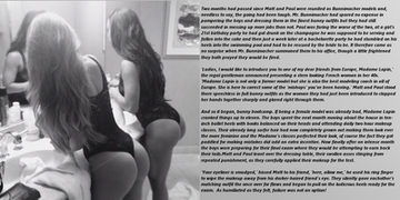 The music inevitably restarted and Isaac's new body resumed its popping and shaking. With every bend and stretch, the shiny material seemed to grow tighter and he felt his loins throbbing with the music. The blonde instructor enticed his body into positions he could have only have dreamed of in his own body – twisting him up like a spandex clad pretzel. He panted heavily drawing the stares of the women surrounding him as his legs and butt grew tired and sore and he longed for a chance to lie down and close his eyes to the mirrors taunting him. Finally, the pounding music subsided and the women around him picked up their towels and mats and headed for the door.