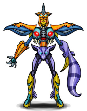 Phew, it took me a while to work out an appropriate design and color scheme for Rampage but I've gotta say I'm really quite proud of this pieceBut on another note yeah I originally tried to make his jagged verticle mouth but I just didn't like how it came out so instead he does possess a jagged purple battle mask when in combat... Just thought I'd point that out in case anyone was wondering