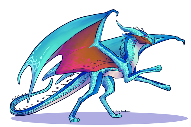 I’ve been wanting to do a series like this for a while, where I try once a week to draw a wings of fire character, and I thought Blue would be a very suiting character to draw. I will be trying to accomplish this goal of mine, and I hope this will be well worth it.I loved drawing this piece so much, Silkwings are my second favourite dragon species to draw, and they have such a beautiful design, and they can basically be any colours and I love that design feature. His pose was very hard to nail down, and I spent a while on this drawing, but in the end, I love how it turned out. My favourite part of this piece has to be his wings though, I love their colours very much.