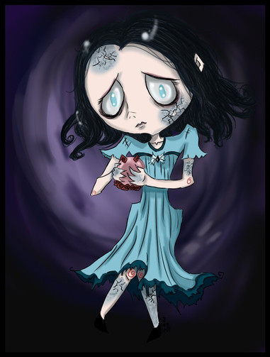 I think of her in the corpse bride style too. for some strange reason i always picture her with like rotting skin n stuff.