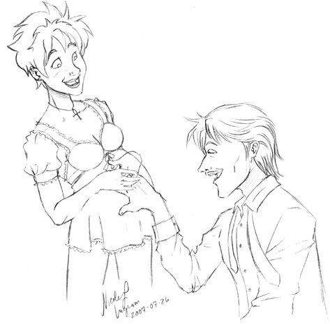 I thought at first that her belly was swollen from hunger, but now I realize that she's pregnant with Voldemort/Tom. Silly me.