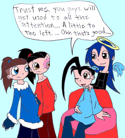 Well yeah. Casie, who is an Irken, is pregnant with Dib, who is a human, and bears his daughter. ^^ These two lovers don't care that they're both different species and both from a different planet. All they care about is that they love eachother. *sigh* So sweet.Possibley could apear in my DACR story, and was inspired by 's pic of Jaz expecting Ace's child. Also I sorta stole the word from the title to name this pic. DON'T KILL ME! *runs*