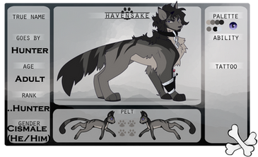 A reference of my character, Hunter. For Artfight! Still have a few more reference sheets to do and I better hurry Artfight is coming soon! Bio for her is still a work in progress.