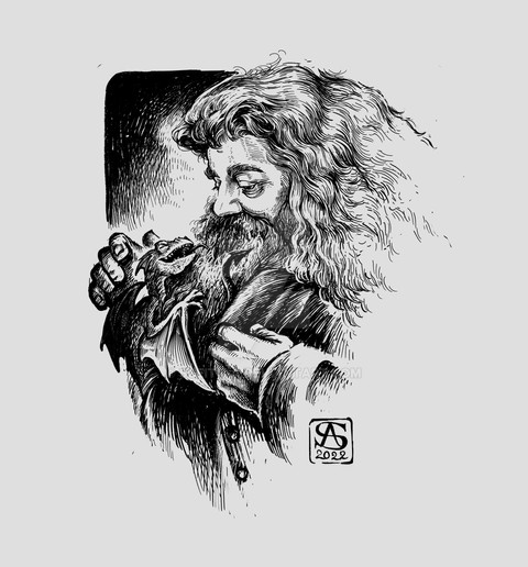 I like the expression at his face. He is kind and has lovely happy smile like it is a puppy not a dragon on his table. Maybe they all are puppies for him)) It’s a great gift when you can love someone in all his beauty, might and power - in all his real nature. And when you ready to take a blow from it. Hagrid is also a strong boy ready for that) however he is a careful nurse for they)) It’s cool!