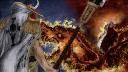 Kaido is my favorite of the new arch, he is a Dragon)) And he is strong, hot-tempered, powerful, cunning and reflective.Kaido is waiting (maybe Shanks?)) sitting by the fire, drinking up and thinking about life, and precious liquid is flowing through his fingers.
