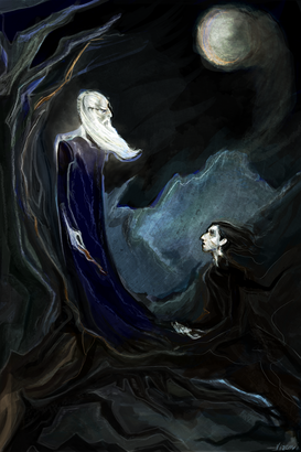 This art was inspired by the ending scene from “Harry Potter and the Half-blood Prince”:‘Snape!’ he said, very loudly, and Fawkes gave a soft squawk behind them. ‘Snape’s what’s happened! He told Voldemort about the prophecy, it was him, he listened outside the door, Trelawney told me!’