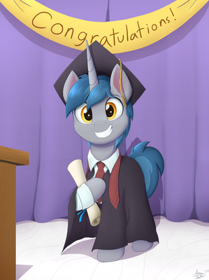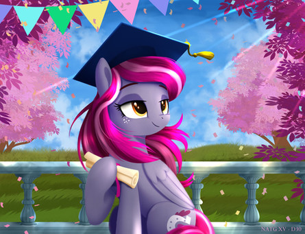 #magic #mlp #mylittleponyfriendshipismagic #pony #originalcharacter #digitalpainting #fanart #unicorn #cap #diploma #gown #graduation #jumping #tablet #flawlesssparklemoon