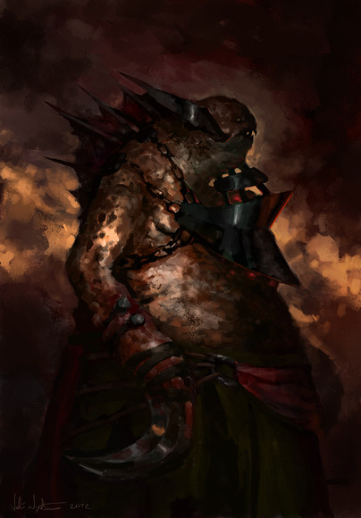 I fear that my own inner demons look a bit like this one. Excellent grungy feel to it, as you place emphasis on the character but not entirely as the rest of your depiction is also excedingly macabre and detailed. Great job.
