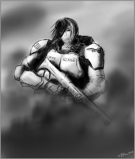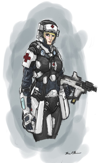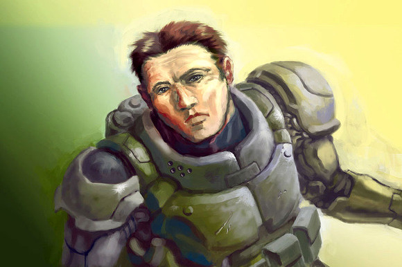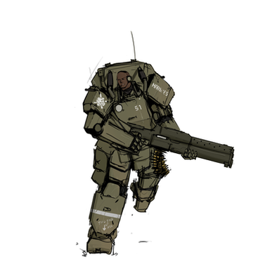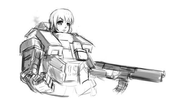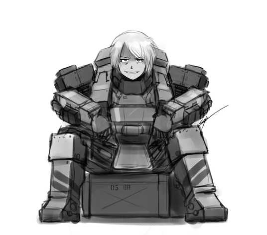 Sketch speculating as to what this big ol fella csp499.deviantart.com/art/Big-… looks like underneath the helmet.A bit more confident with my people-drawing skills, I figured stylization in this new method I've been using could use some work, cuz so far it tends to look like shit.