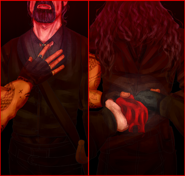 Oh I'm on to you, Lavellan thought with great disapproval as her lips pursed and her eyes narrowed upon him.