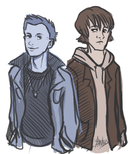 An Illustration of Rory and Aileen from my webcomic Death and Dawn, which you can find here [link] . I feel like this totally turned out rad, a lot more so than I thought it was going to~!