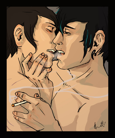 I think it's so cool how you did it. At first I thought he was just blowing smoke into her face, but when I looked at the details I realized "hey, his smoke is making her!". Pretty cool, I say