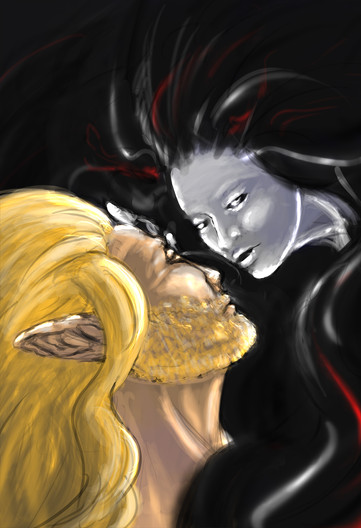 all the details in this just, i cant even comprehend but they work so seamlessly together. theres a lot in this piece, but not overwhelming? you give everything enough space where its not clustered, and i love the transition from aileen to rory, ugh, so much. the light breaking on the waterfall in the background, the sky, the bloody, dark looking water. such intensity dude. youre so amazing.
