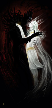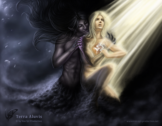really lovely work- I like how it feels like the "maintanence" of purity for some reason. To me the girl's oddly serene face and her bright light and generally non-resistant pose makes me feel like she has the strength to hold her on, despite the darkness trying to pull her in.