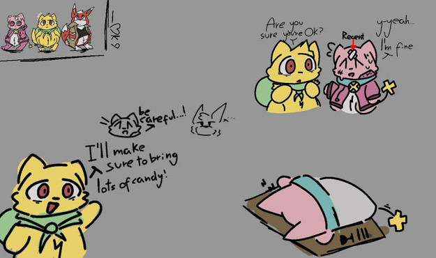 i like to imagine ok s o hello kitty canonically likes baking right ,,, ,so i like to imagine she tried to teach dear daniel to bake and hes failing miserably lol and hello kitty protecting his feelings from kuromi whos also there just becauseUHHHKSSH