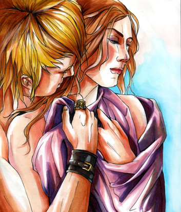 I like Nehemas glance... plus the linework isn't as 'thick' as usual, makes the drawing light and more focus on the colouring.