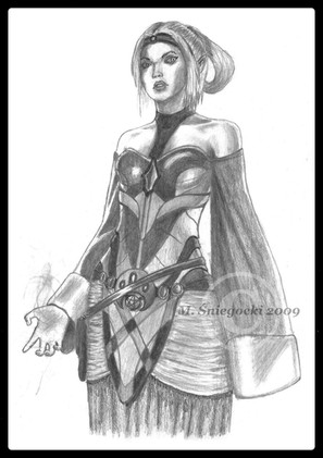 I drew this back in November during a lazy day at work, but was too lazy to upload it.I am also too lazy to edit it much and sort out mistakes, so here you go: A Morrigan in all her beauty as she was drawn on paper.