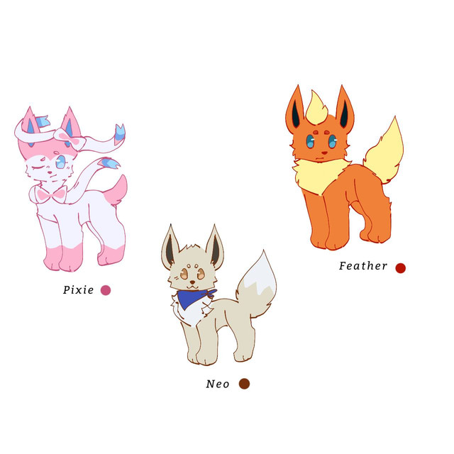 With a bonus little eevee from the end of the prologue!+> Some designs might be different from how they originally look in the comic, mainly because of the timeline placement.