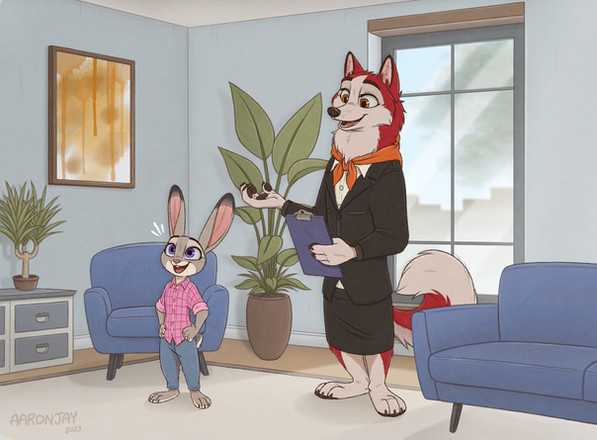 While Balto was off on tour, he left a bun in the oven with Jenna. Triplets they told her as she rubbed her belly feeling the life moving inside her, excited for their pups to come and praying that her mate would come home safely. A new chapter in their lives would begin as parents in Zootopia.Great thanks to the artistΒ twitter.com/kefitani for commissioning this lovely art piece.