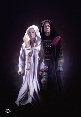 Doctor Who - The Night of the Doctor (2013 Special). Art by DdL 2020.Paul McGann as the 8th. Doctor and Clare Higgins as Ohila the High Priestess of the Sisterhood of Karn.