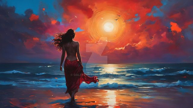 #beauty #beach #reflection #digitalart #drama #sky #sea #portrait #digitalpainting #photography #contemplative #eclipse #emotion #expression #glow #light #lunar #moon #night #realistic #red #serene #shore #subtle #waves #woman #art