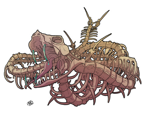 I adore this piece.. Love the colors and how the blue makes it stand out a lot. Also all the details are lovely as well showing the bones,skull, and what it ate. Very brilliant and very awesome work. Please keep it up!