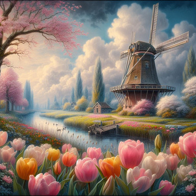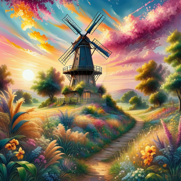 #ai #dream #illustration #wallpaper #mill #landscape #painting