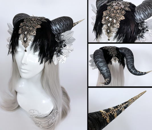 #costume #fantasy #faun #fawn #headdress #headpiece #masqueradeball #ramhorns #rave #fauncostume #steamwolf #steamwolfsymphony #hornedheaddress #masquerade