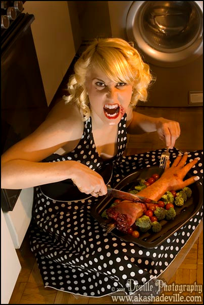 This is a deliciously horrible photo, and a great idea. The attention to detail is brilliant and the look on the model's face is so quality. My favourite bit is the disembodied foot in plastic wrap