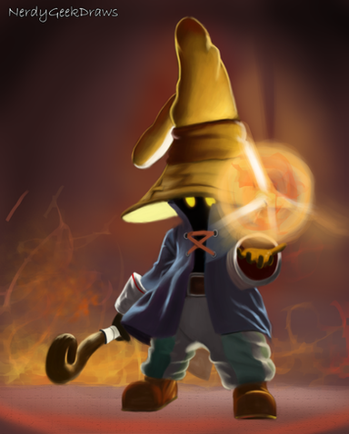 awww Vivi looks so cute and lovely how you drew him like that with a cool fire spell in his hand and the colouring job and the fire effect looks awesome too nice work and keep it up, FFIX is my fave Final Fantasy game and Vivi is my fave character too n_n