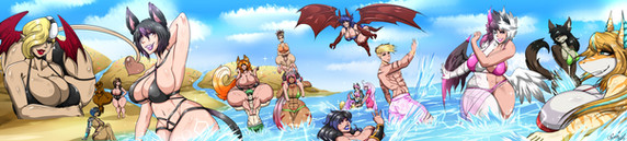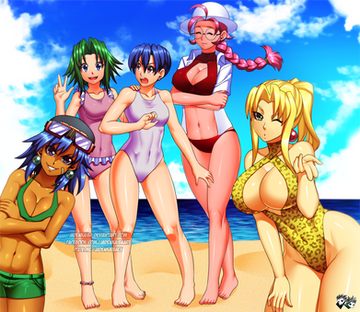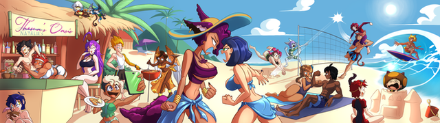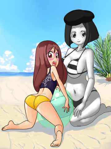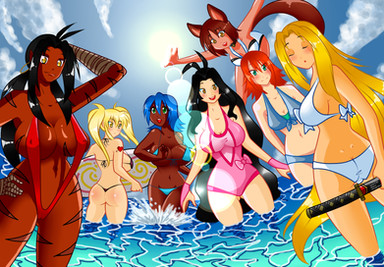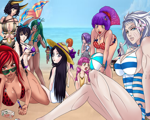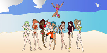 (added the volleyball which i just forgot to add) This year i felt like drawing a picture for the summer that's ending, guests characters from people who watch the livestream show:Characters from left to right