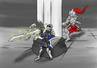the pose the knight'd doing reminds me of Freakazoid for some reason (Example from this GIF that is edited for a good reason: Rope Followup )