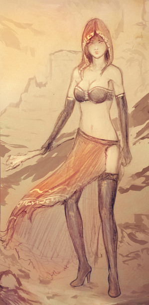 #duel #dust #fighter #girl #orange #rock #shield #sword #warrior #woman #fire