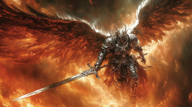#angel #hell #red #swords #warrior #wings #fire