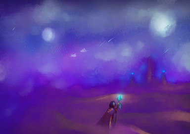 aww, I really like how you painted the sky and the stars, beautiful scene ! c: