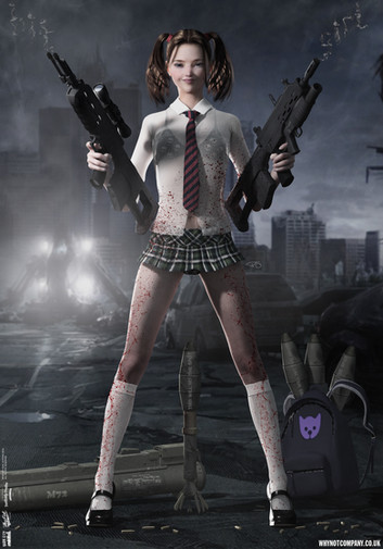 Great pose/character... very nice work depicting the character in 3D.. love the environment... the dead guys (zombies?) are lovely... and she's quite the cutie herself!