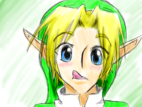 I saw this expression on Link's face in the OoT manga vol. 1, when Mido is cursing out young Link and saying he's out "girl-chasing"...and big Link is right there, thinking, "Umm..it's not like that, really..." XDAnyway, I thought it was cute so I drew it on TP Link. (And put it as my avatar. rawr.)