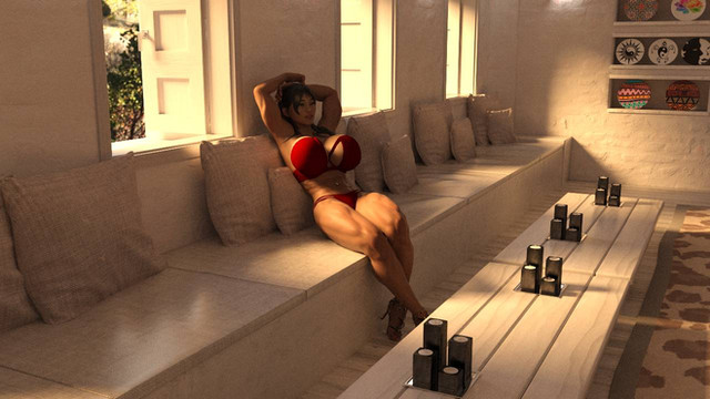 #beauty #digitalart #body #pitbull #sleeping #strongwoman #underwear #wakingup #muscularfemale #tallwoman #daz3dstudio #thickthighs #irayrender #dazstudioiray