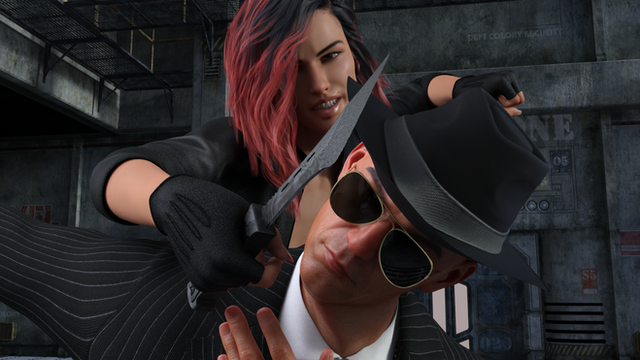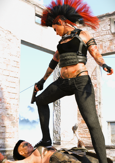 #action #intimidating #knife #maskedgirl #rain #strongwoman #assassingirl #muscularfemale #tallwoman #dazstudioiray