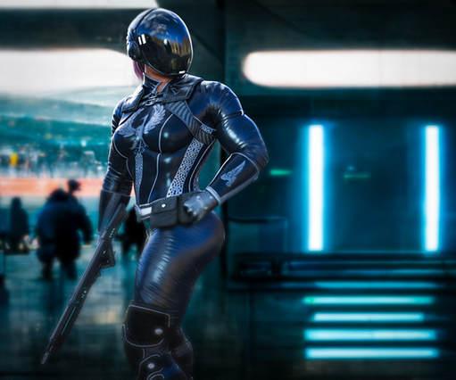 #colourful #intimidating #maskedgirl #neonlights #pistol #strongwoman #assassingirl #muscularfemale #tallwoman #irayrender #dazstudioiray