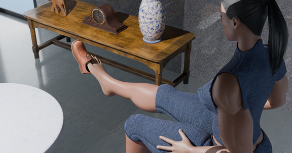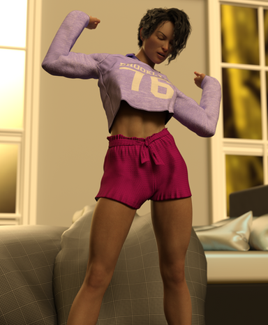 #barefoot #lounging #purplesky #shortshorts #strongwoman #muscularfemale #tallwoman #thickthighs #irayrender #dazstudioiray