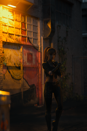 #abandonedbuilding #leatherjacket #maskedgirl #strongwoman #assassingirl #muscularfemale #perspectiveart #daz3dstudio #dazstudioiray #absgirl