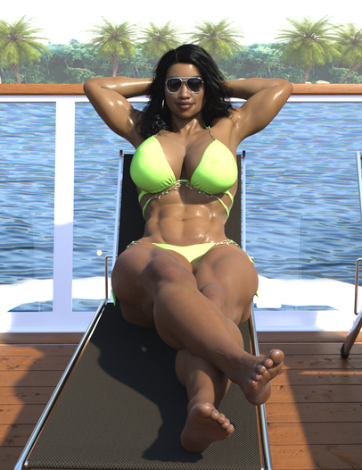 #beachsummer #bikiniswimsuit #render #stretching #strongwoman #sunglasses #muscularfemale #tallwoman #tannedskin #daz3dstudio #thickthighs #dazstudioiray